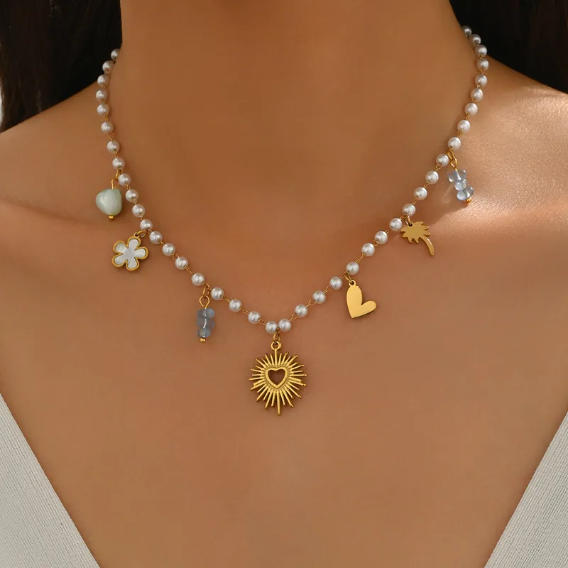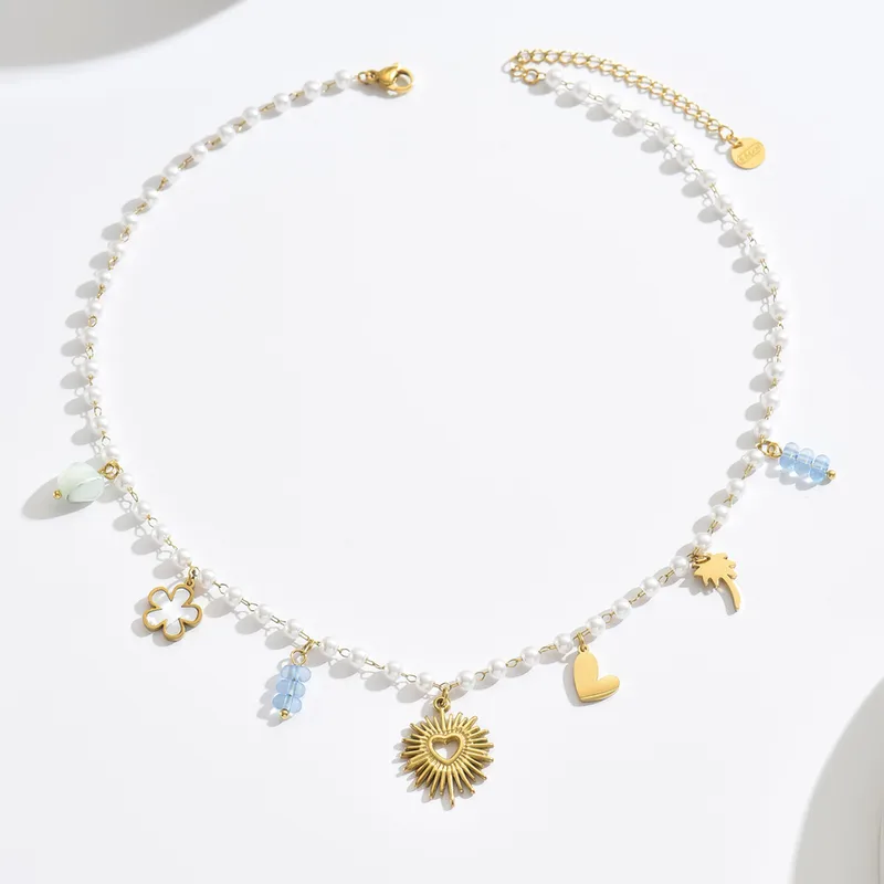 Collier breloque en perle et acier inoxydable.